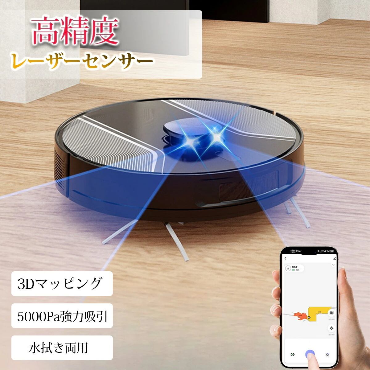 ロボット掃除機 5000Pa 強力吸引 水拭き両用 お掃除ロボット 高精度レーザーセンサー 3Dマッピング 静音設計 水拭き 床拭きロボット 小型 コスパ 2in1 落下防止