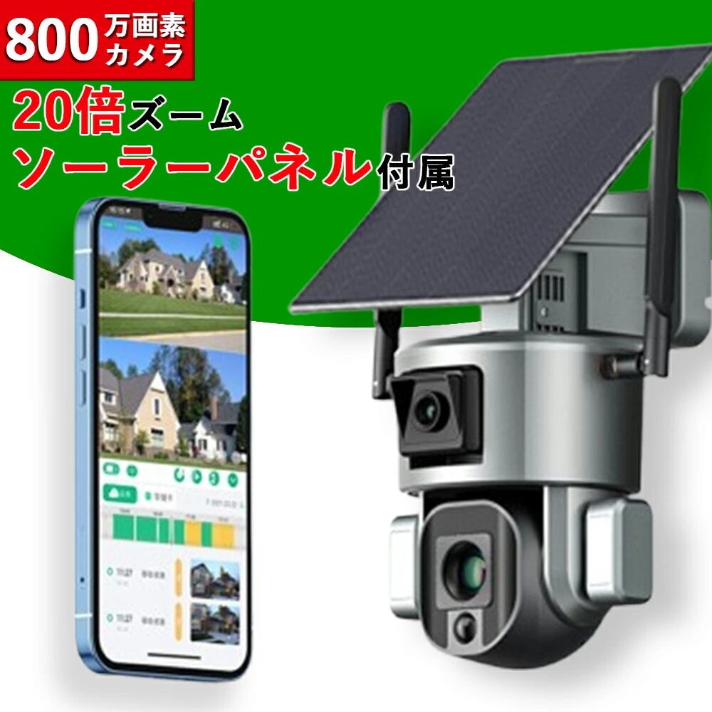 防犯カメラ 屋外 ソーラー 800万画素 高画質 家庭用 ワイヤレス wifi デュアルレンズ デュアル画面 監視カメラ 動作検知 自動追跡 夜間カラー スマホ 遠隔監視