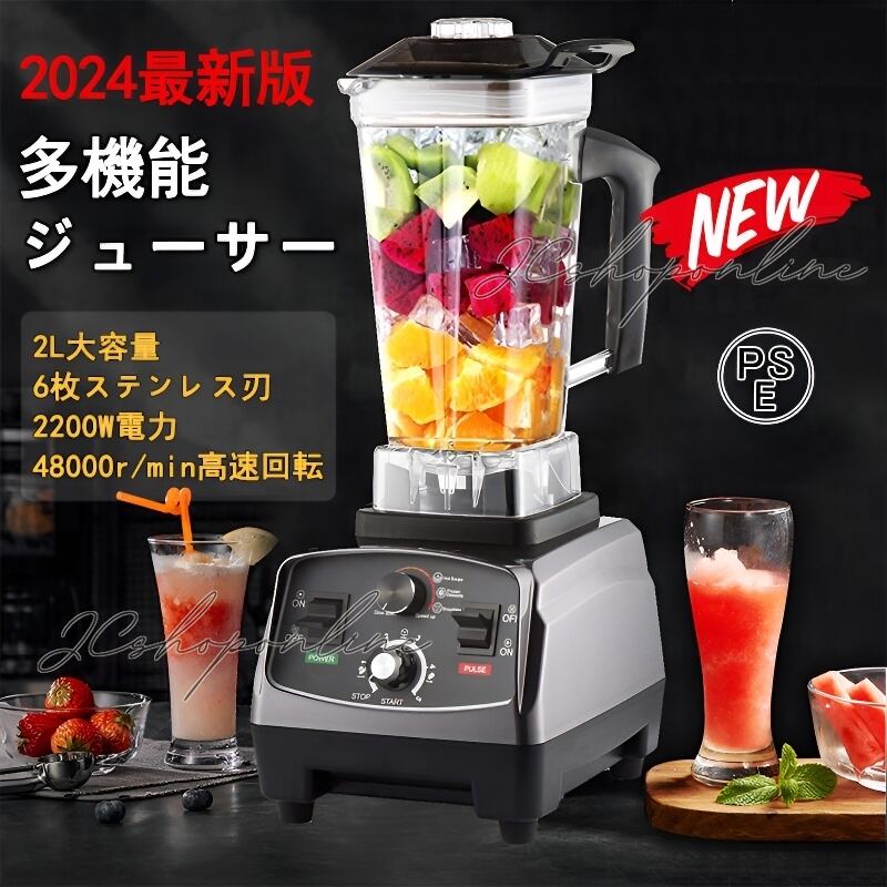 ミキサー 多機能ジューサー 2L 大容量 ブレンダー 家庭用業務用スムージー 2200Wタイマー機能付き-48000RPM高速回転 過熱保護 操作簡単 2024