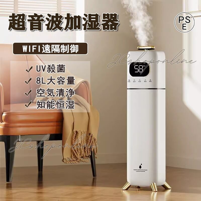 加湿器 おしゃれ 大容量 超音波式 空気清浄機 8L 40畳 UV除菌 ウイルス対策 乾燥対策 次亜塩素酸水対応 アロマ対応 空焚き防止 定時機能 知能恒湿 家庭