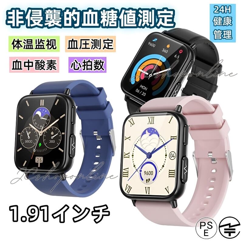 「2024新登場 無傷血糖値測定」スマートウォッチ 1.91インチ 日本製センサー 心電図 24時間定時体温 心拍数 血中酸素 血圧 着信通知 健康管理 父の日 ギフト | jc5588store