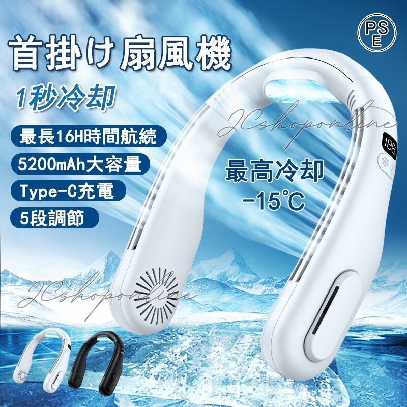 首掛け扇風機 扇風機 携帯扇風機 冷却 ネッククーラー 首かけ扇風機 卓上扇風機 静音 羽なし 軽量 接触冷感 LED表示 5段階 5200mAh USB充電 熱中症対策 2024最新 | jc5588store