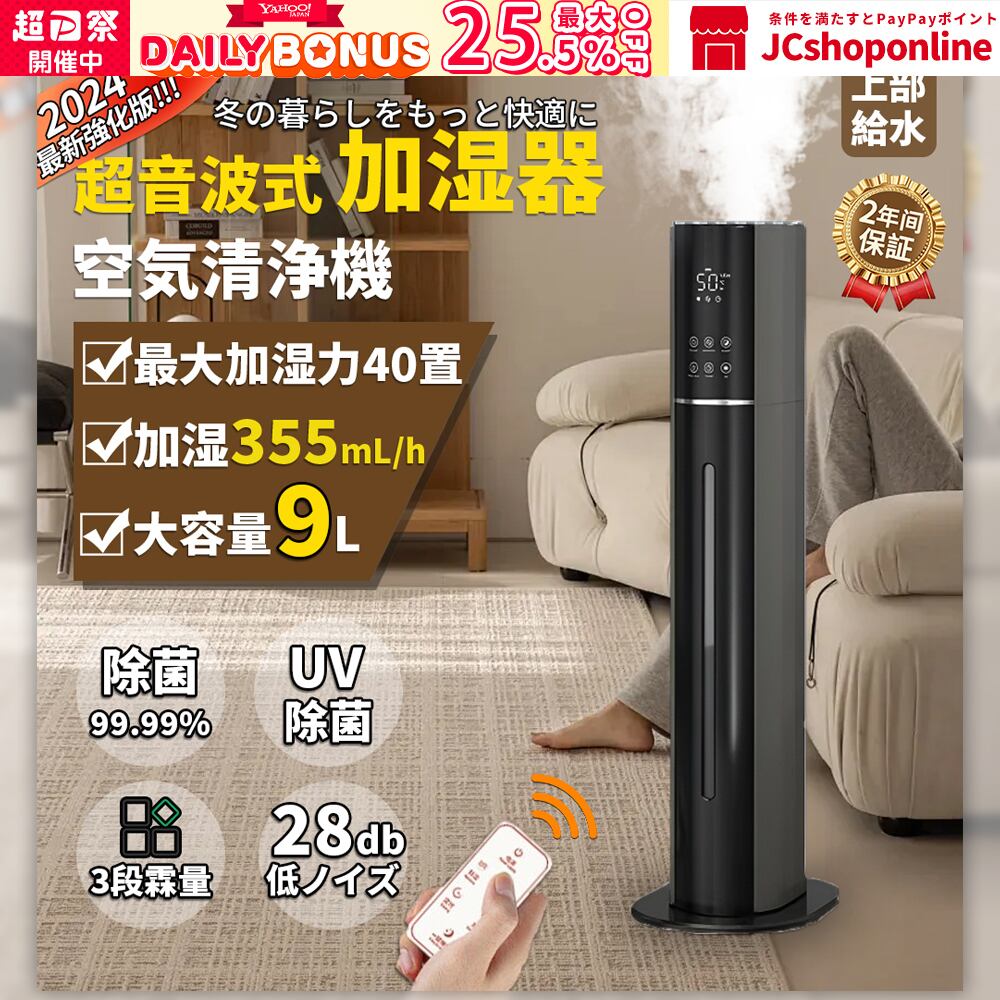 加湿器 超音波式 大容量9L uv除菌 空気清浄機 タワー型 4重除菌 48H連続運転 自動湿度調節 上部給水 スチーム式 上から給水 静音 花粉 省エネ 2024最新