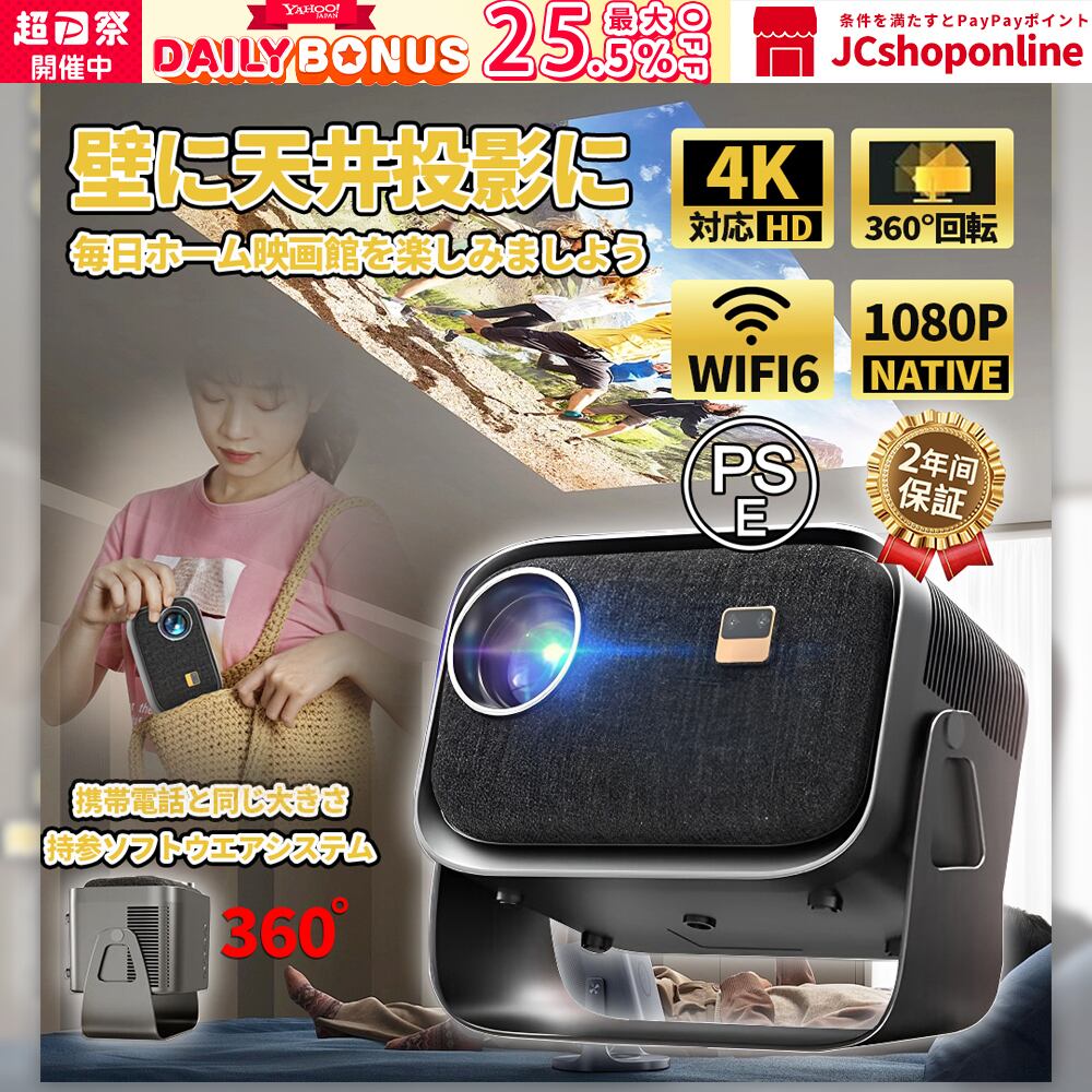 プロジェクター 天井投影 小型 家庭用 4k 本体 1080P WiFi Bluetooth 高輝度 高解像 自動台形補正 スマホ iPhone android コンパクト モバイルプロジェクター