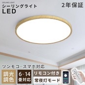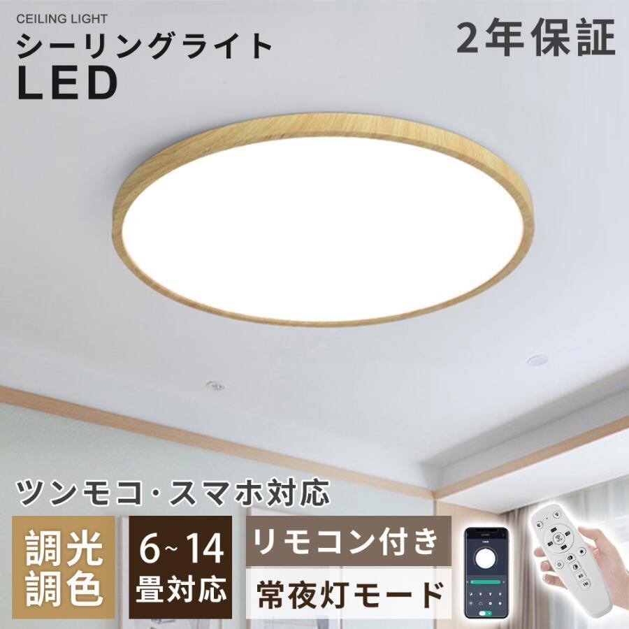 シーリングライト led 6〜14畳 薄型 北欧 おしゃれ 木目調 調光調色 照明器具 常夜灯モード リモコン付き 省エネ 和室 洋室 丸型 居間ライト リビング 工事不要