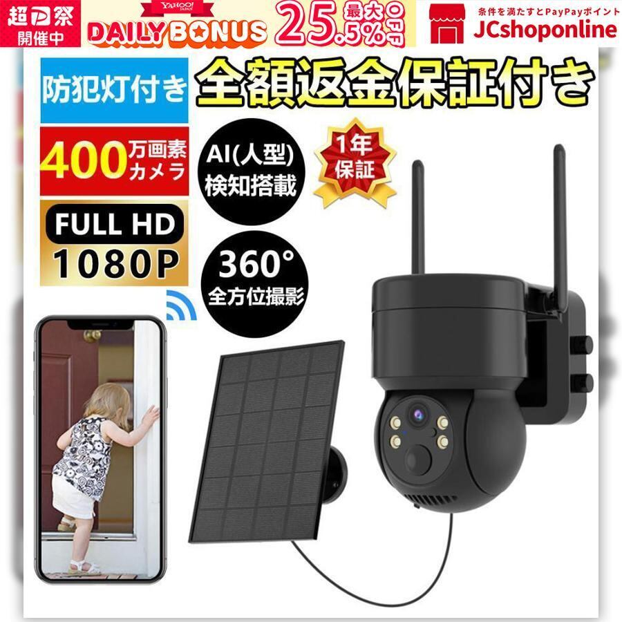 防犯カメラ 屋外 Wifi ソーラー 家庭用 400万画素 ソーラー充電 電源不要 監視カメラ AI人感検知自動追跡 双方向会話 IP66防水 防犯灯付き 簡単設置 おしゃれ