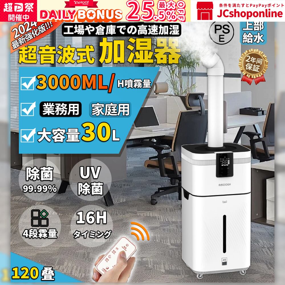 業務用家庭用加湿器 大型 30L大容量 超音波加湿器 UV除菌 空気清浄 クアッドコア アトマイズ 空焚き防止 乾燥/花粉症対策