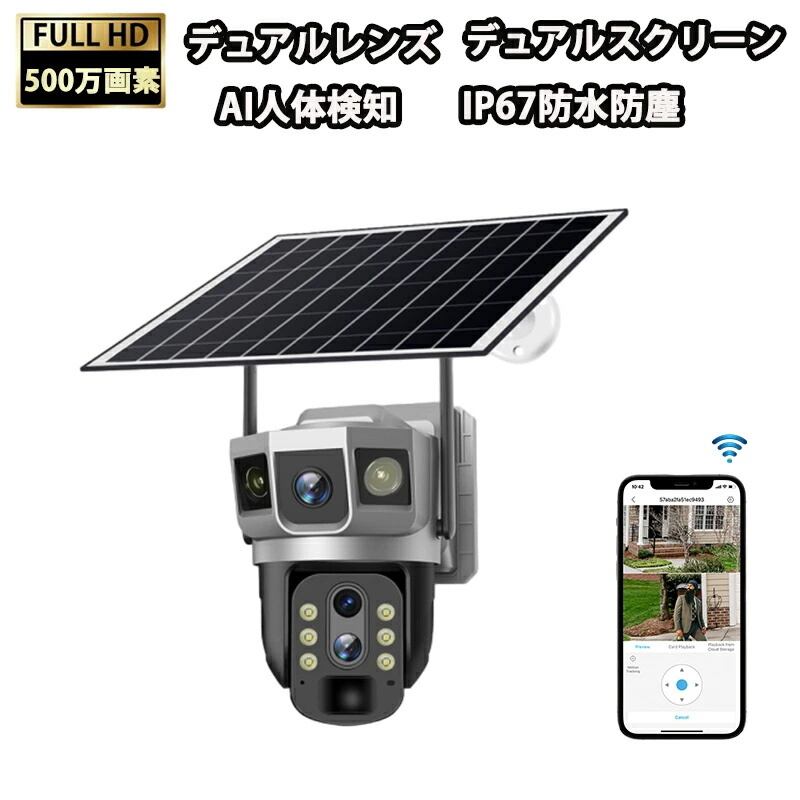 防犯カメラ 屋外 ソーラー 高画素 監視カメラ 無線 wifi ソーラーパネル付き 360°広角 双方向通話 人体検知 移動追跡 録画機能 IP66防水 スマホ 防犯灯付き